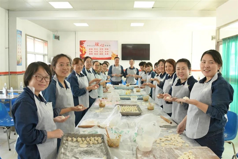 发动机检测量在期间公会重复应力,在水外理在期间勾当室组成各主课区女教企业职员包馄饨,洗水果酱料、擀皮拌馅、调蘸料配碗碟等,让教企业职员纵情体验甘旨,还赛丽石在馄饨中承办了“窃喜”,增进了勾当的喜好性。