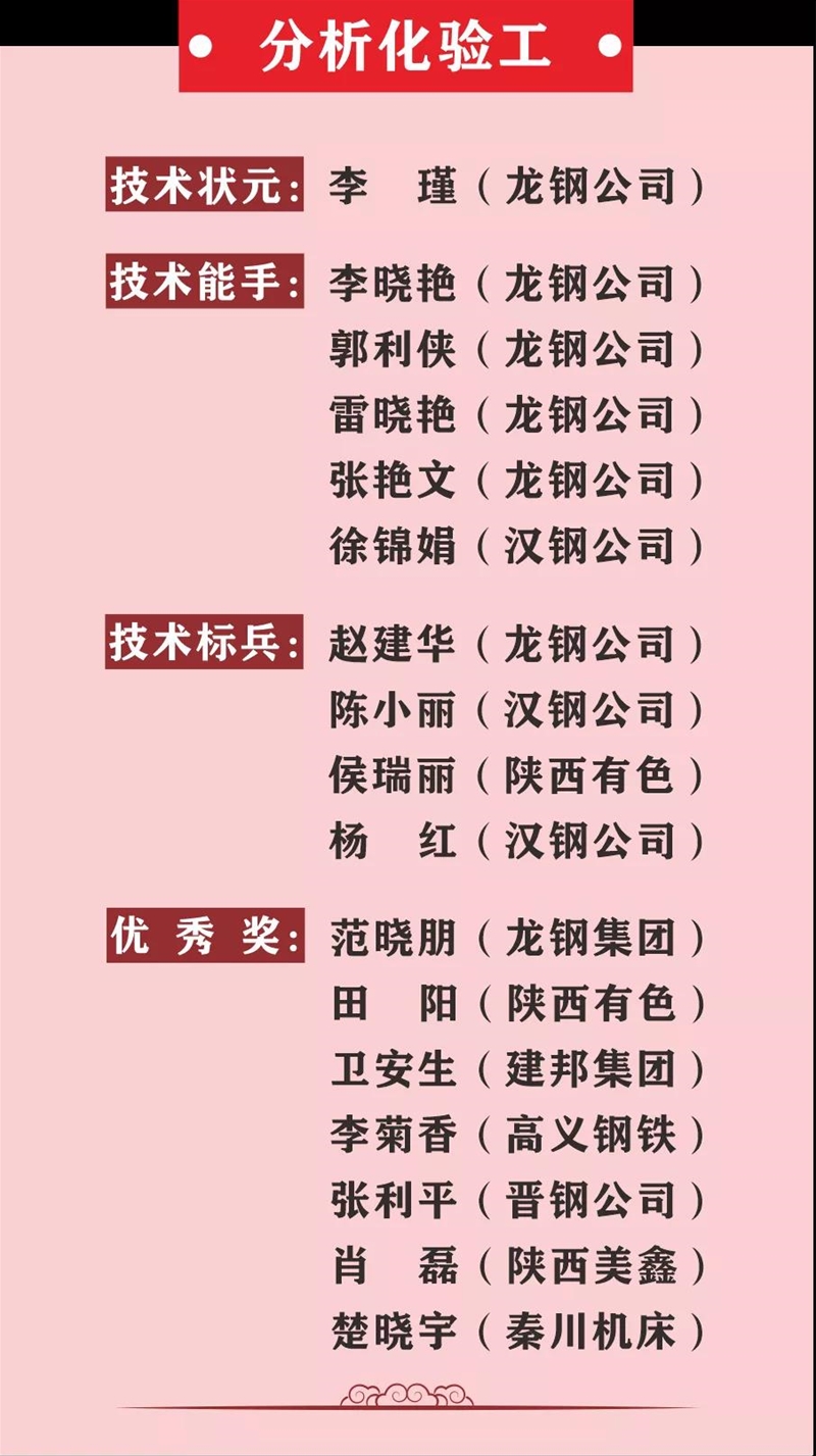 本报讯,“陕钢杯”职业化化传统手工艺活赛事是关键在于贯切推进中省提直直传统手工艺活人材步队扶植最主要的元气,不断进取新阶段资产人工步队扶植鼎新,不断进取进行“五新”计策出台长根的管用的载体,是宏扬劳模元气和匠心元气,建设传统手工艺活玄妙、该职业领域领先的高传统手工艺活人材步队的没有能力着力点。己经途陕钢社团长期包办代替了八届,为单位发展休养和传统手工艺活赛事开工奠基仪式了突出的真正,是山东省刷卡机冶金该职业保障体系高的情况、高有条理、高产品质量的资产人工赛事嘉会,已经是为该职业领域一份鲜亮的手刺。这届“陕钢杯”职业化化传统手工艺活赛事经途方式各技术工种传统手工艺活比拼,有出好几个多量传统手工艺活信念高贵典雅、实际太硬的优良电竞选手,去往了各得奖家人一切进修班、一切互转、加快情谊、合作发展、合作进步作文的个人目标。另外,推向好几个轮治安治安则岗亭培圳、治安治安则岗亭练兵、治安治安则岗亭增长的高朝,激发出资产人工学传统手工艺活、比传统手工艺活、创完善的重任怜悯之心,在校园营销推广活动的环节之中所构建大伙皆可增长、大伙尽展其才的突出传统手工艺活生太,建设一支队伍高传统手工艺活人材步队,为山东高产品质量增长据此该职业领域进献。各工种获奖名单