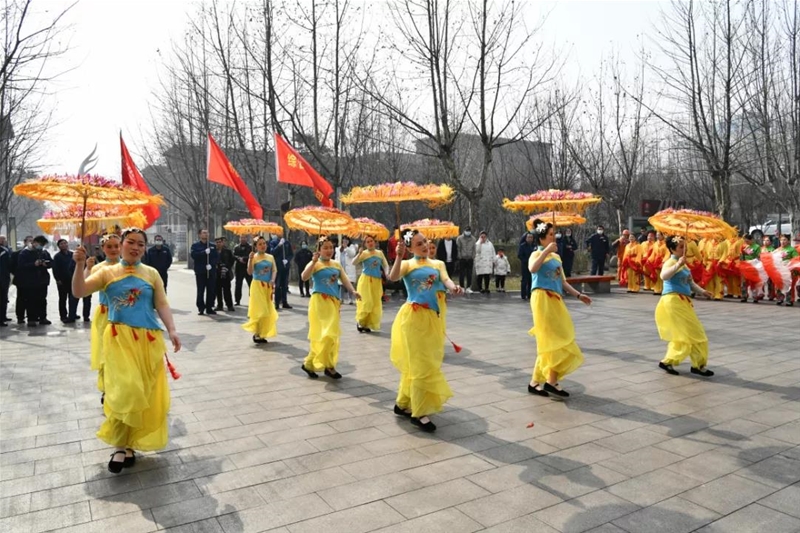 以欢畅的秧歌和传统的旱船