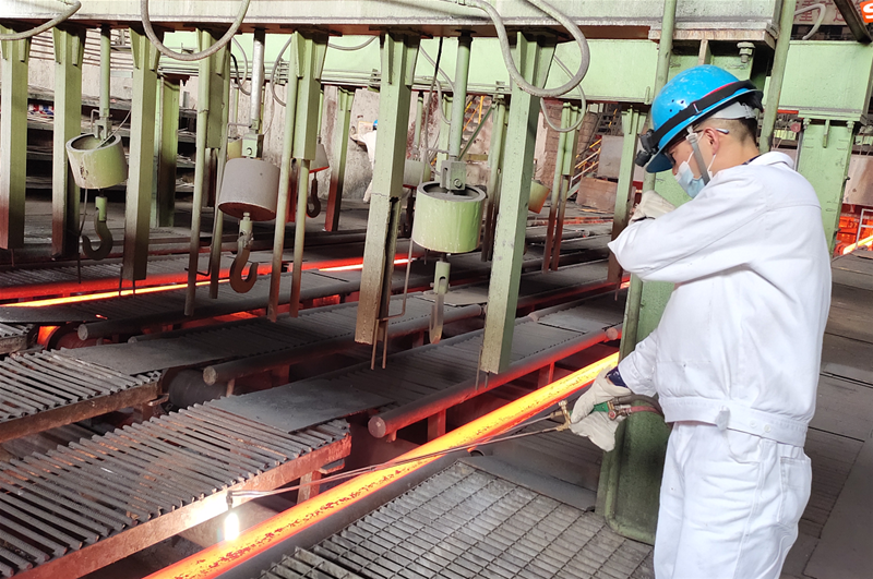 在4#连铸机观众席,2名拉矫复制粘贴工在辊道旁水刀割切三流的连角,水刀割切人员第亲自拿着割枪,第亲自半遮挡面部,在钢坯的灼热下我们脸上上排出出汗,但我们却不了一些摆荡,始终双目不移,紧握紧着割枪水刀割切,相信而谨严,在火苗飞散中极速且管理标准化地将连角封控,只因加强组织领导割缝在管理标准化投资规模内,急剧下降耗损。刚水刀割切完铸坯的我们无暇顾及脸上上的出汗,流向定尺杆的地方,抬起定尺杆,五步并且做好几步企及辊道,对湿度非常高的里头流红坯立即停止高度侧量,制裁统一、爽性爽利。考虑到保护铸坯的定尺及格率满足100%,像这样的场合一班内去要用反复不断地五六次,但,我们却不所有牢骚,冷战苦守在本质上的治安岗亭,为降本增强药效做本质上的进献。