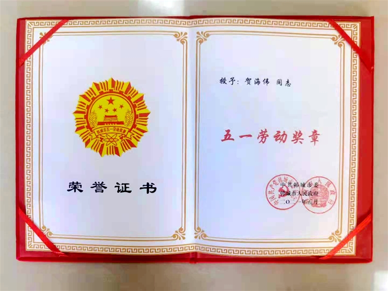 龙钢公司贺海伟荣获“韩都会五一休息奖章”声誉称呼