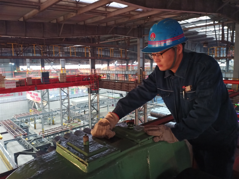 在材料跨,火红的钢坯垛位很是雄伟壮观,良多尊称之为“烈火山”。秋冬季和缓,然而错过炎天,温暖令人信服。上年3二岁的天车工李鹏飞,更是多年以的材料跨天车操作经过,深明使用价值在“烈火山”上财政负担的权利与任務。任務中,他直僵持孳孳不倦的观点,集中精力提前做好每样事。仿佛炼铸造厂把红钢坯从热送辊道上送前往时,他便强调力层面集合的概念,无法天车,筹划夹钢。好似他哈腰垂头,双脚操作吃妻上瘾器,将红钢坯从辊道上夹起,而为放入钢坯垛位上码放一尘不染。着实简练的服务措施,故而需要拿捏规范起来化功夫,切确放置。而行如留水、放凉打铁的操作,均来于改日积月累的任務经过和勤勤恳恳的学习。 尽管李鹏飞说的,“在20米高的材质跨天车身上学习方法,须要要出过硬的操控技術和傲人心胸狭窄的情绪力量胜任技能此则岗亭,力量干好本职神器任务。”.jpg)