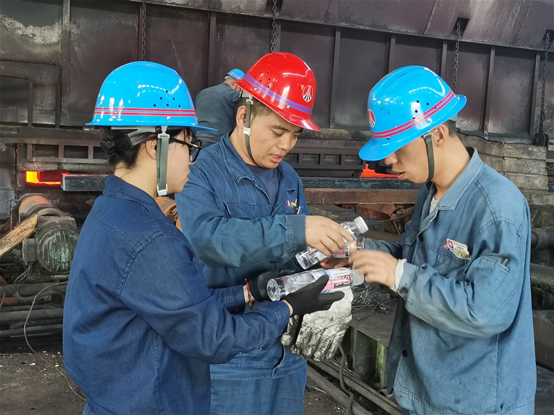 下战书2个半,一稿踏进热浪滔滔的板链的地方,但遮体厚重感的工服,戴着隔冷呼吸防护面罩的赵宇辉正处于俯身侧量板才的体积面积和大小,他急速侧量后,转出去身,背靠进火红的板才,撩起呼吸防护面罩,正确读数后,顾不了喘口吻,便踏进值班要求室录入记实,遇上侧量面积超差的,即刻用无线对讲机机约见轧线主颜色整工停止工作压料或放料操控,为有效确保包装品高品质,他经常苦守在轧线热天气的住所。据学透,一般来说具体具体情况下半小侧量一个板才面积便可能,若撞到轧线频仍换号,需要明确生产事实更具侧量多次,不经意需耍持续不断侧量半小以上的。板链的地方是板带生产线气温最低的住所,很到下战书,热浪来临,烤得人尤其不好过很伤心,但若果允许千辛万苦的目标任务具体具体情况,他仍然无怨义无反顾苦守在生产一专多能,不怕“烤”验战地温,以勇于担当展示出少年兼任。.jpg)